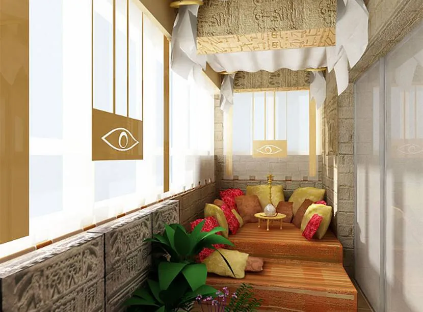Скамейки, как и столики, могут быть откидными. Если для сидений на балконе вообще нет места, но он предусмотрен для отдыха, на полу можно по мере надобности раскладывать красивые подушки. Особенно – если балкон сделан в восточном стиле.