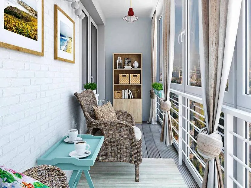 Для маленьких балконов целесообразно применять раздвижную и складную мебель. Оборудуют комнату столом с откидной столешницей, стульями-трансформерами, используемыми только по необходимости. Многие используют раздвижные компактные диваны (некоторые модели образуют спальное место). В дизайне балкона маленького размера функции столешницы иногда выполняют подоконники.