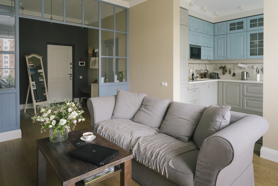 Давайте рассмотрим несколько хитрых способов огородить безоконную кухню и обеспечить ее доступом к свету из смежного помещения.