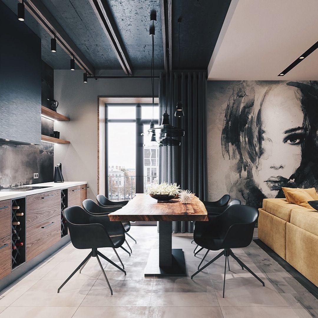 В первом варианте геометрия пространства радикально меняется. Логично, что дизайн одной комнаты должен быть продолжением другого. Обе области должны быть завершены в одном решении проекта. Дизайн текстиля обязательно должен быть таким же. Таким образом, он объединяет кухню и гостиную.