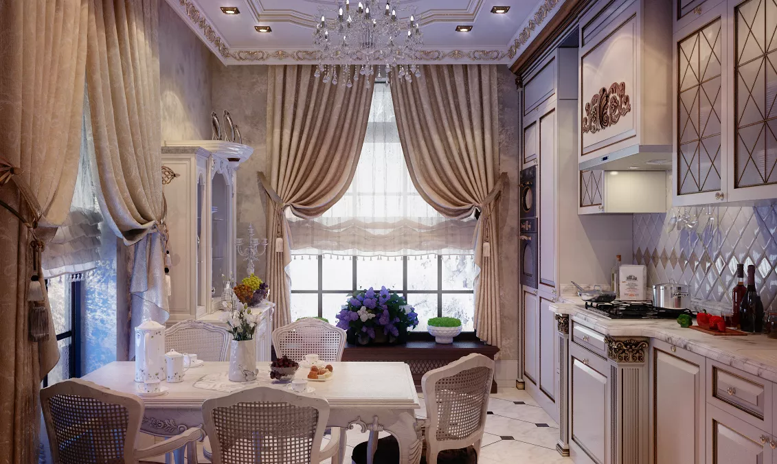 Если площадь помещения меньше 9 квадратов, лучше выбрать другую стилистику. Что касается оформления небольших кухонь, можно использовать несколько рекомендаций для того, чтобы неоклассицизм органично вписался в пространство: