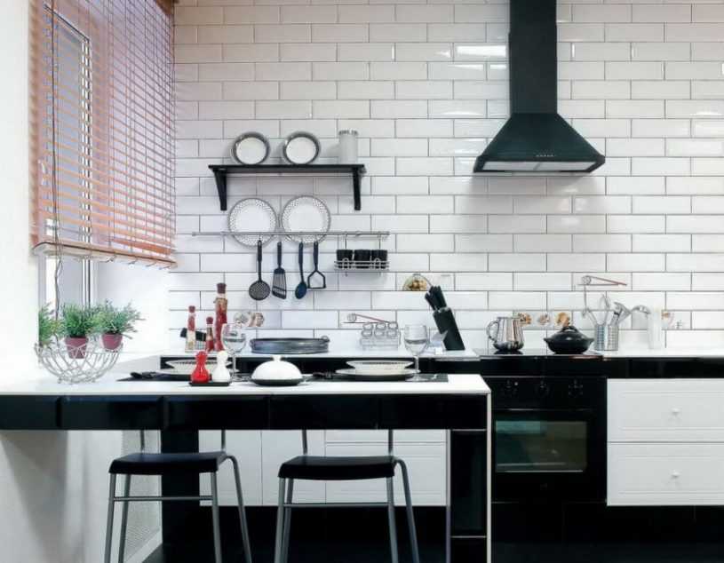 Черный комфортен в сочетании с цветными фасадами. С белым гарнитуром этот темный тон смотрится чересчур броско. «Взбодрить» слишком бледную кухню можно при помощи ярких штор, аксессуаров: они сделают помещение по-домашнему уютным и радостным. Эксперименты при обустройстве кухни только приветствуются, тем более, если они выполняются с учетом советов профессионалов!