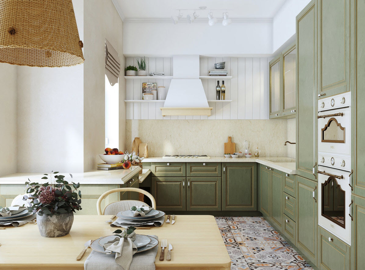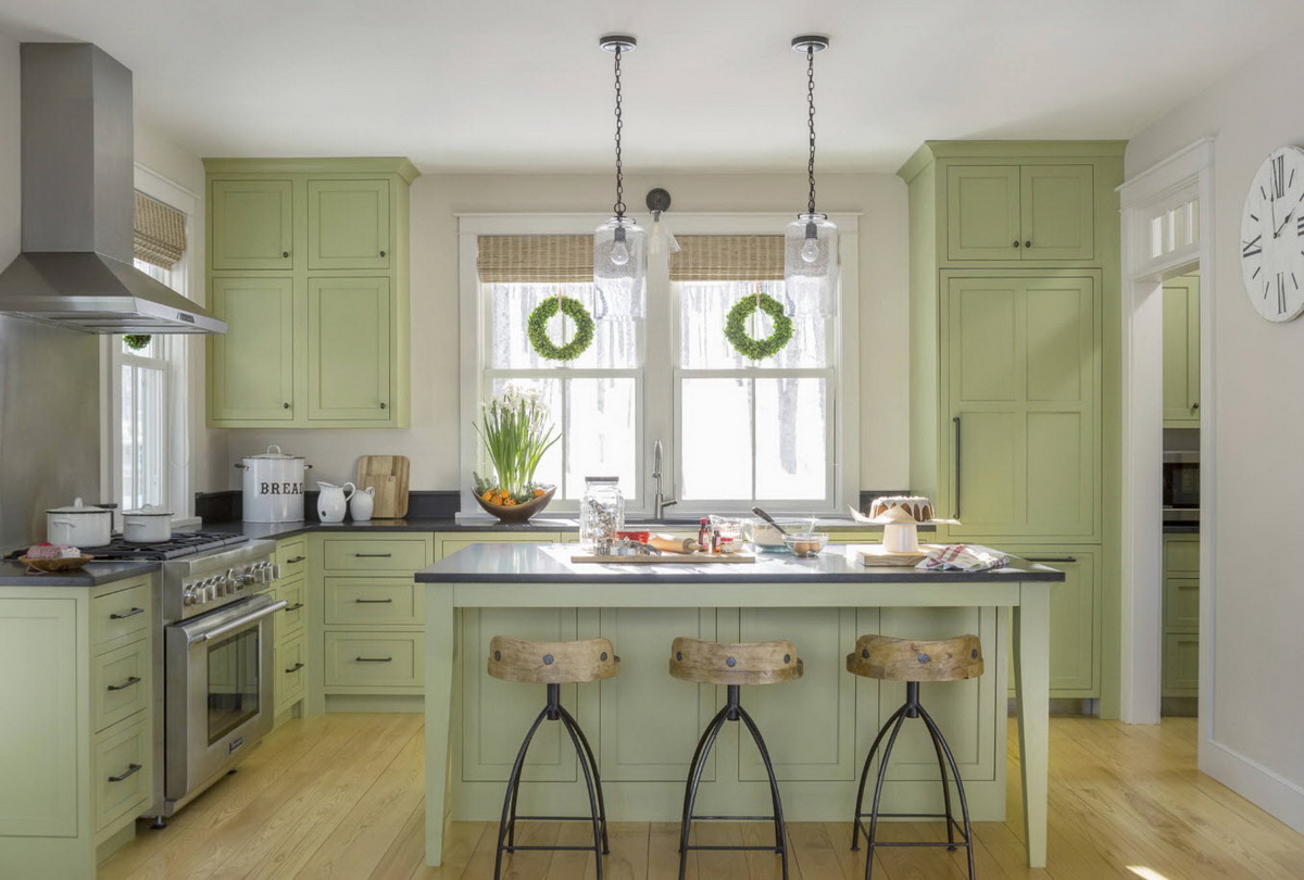 Средиземноморский стиль и кантри можно расцветить с помощью травянисто-зеленого