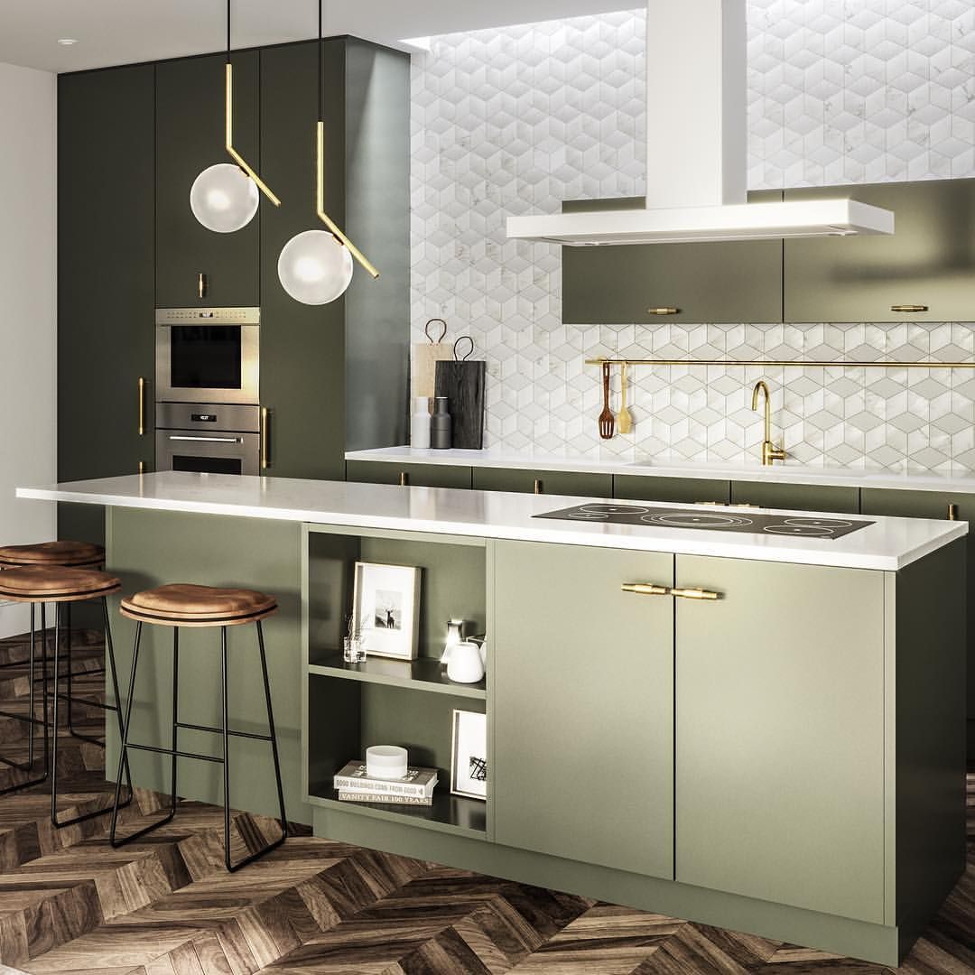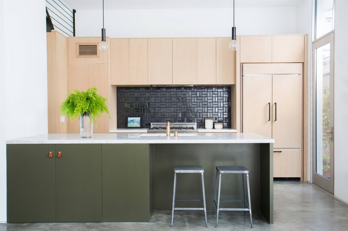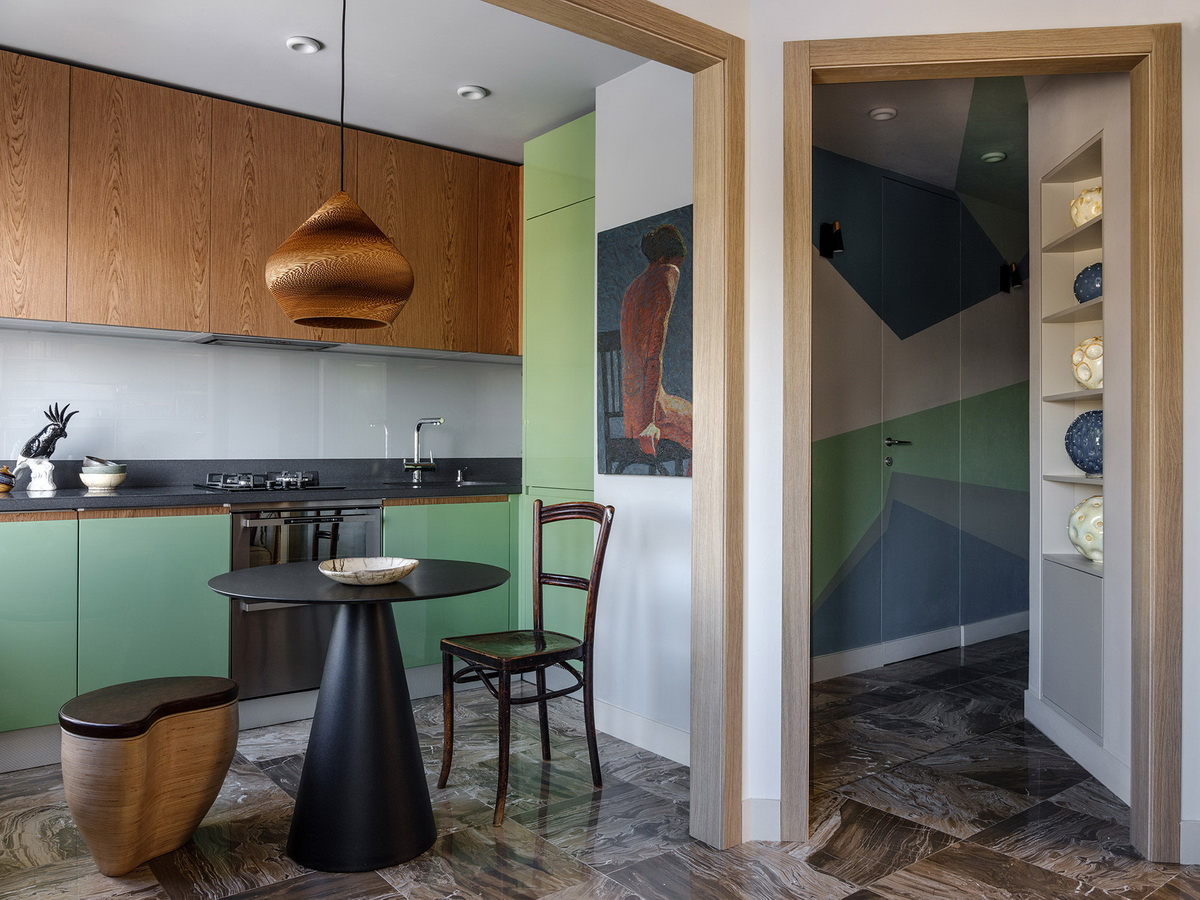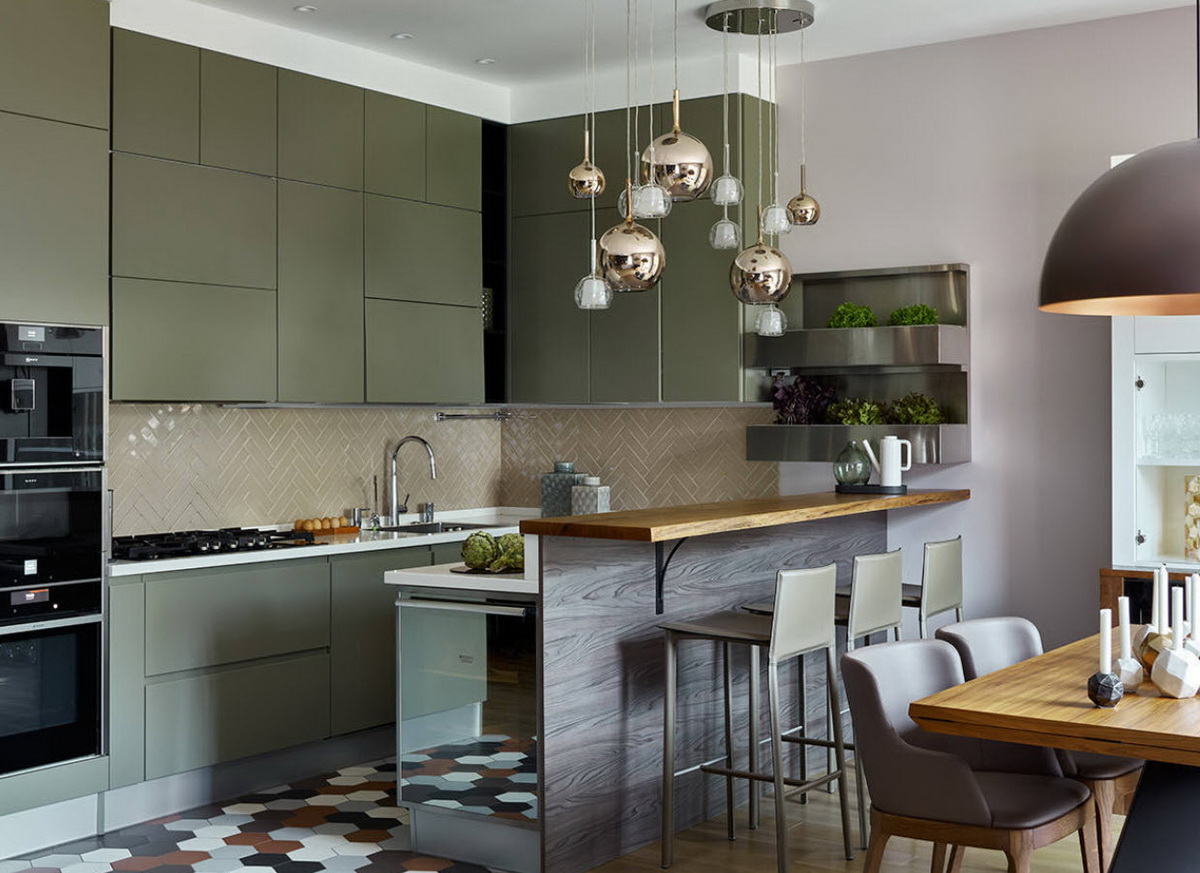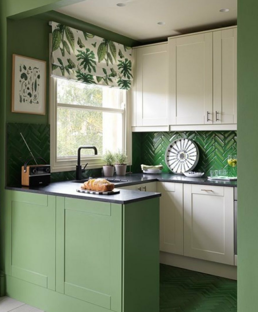 Как видите, дизайн кухни в зеленом цвете не всегда должен быть однотонным и скучным.