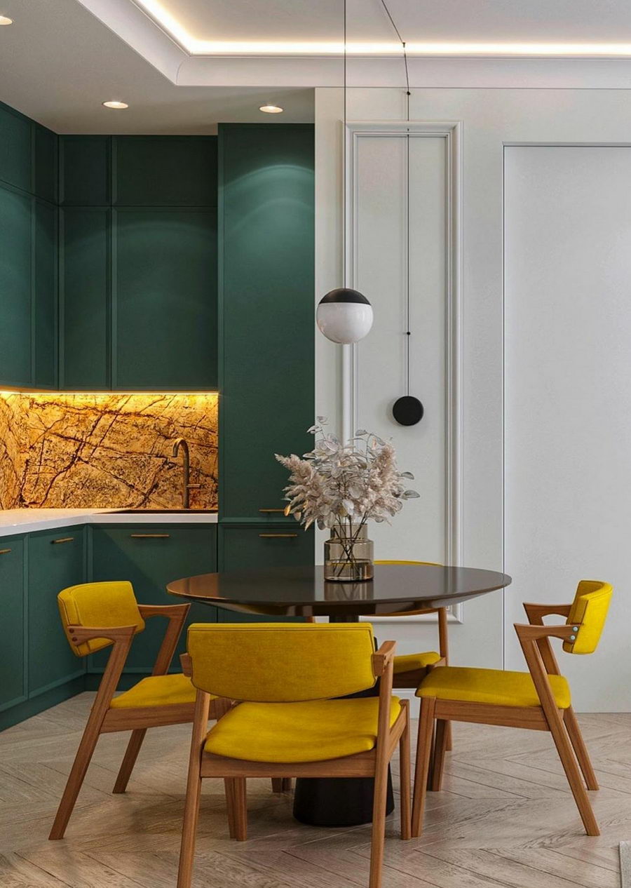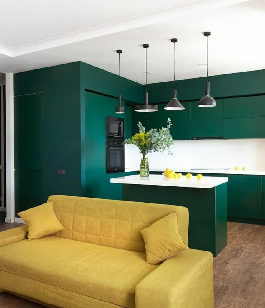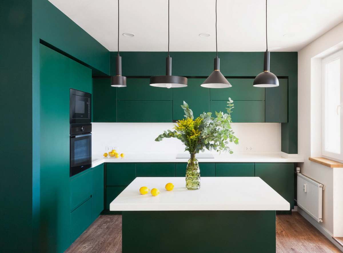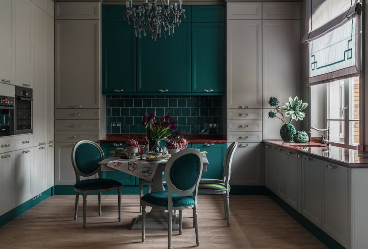 Изумрудная кухня: правила сочетания цветовых оттенков