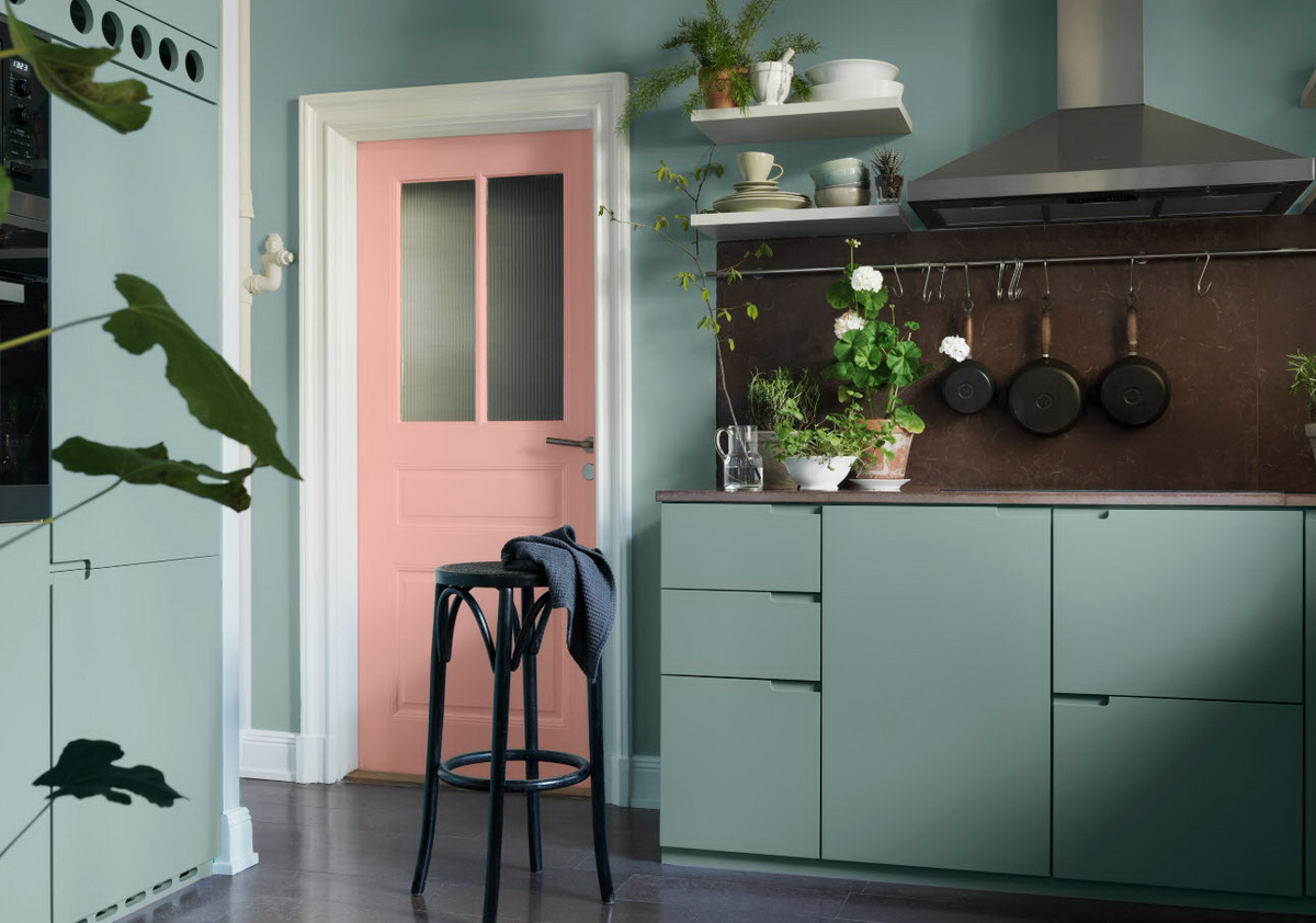 А чтобы добавить солнечности, его можно сочетать с желтым цветом. Это могут какие-то желтые акценты в виде декора или посуды, возможно, фартук и т.д.
