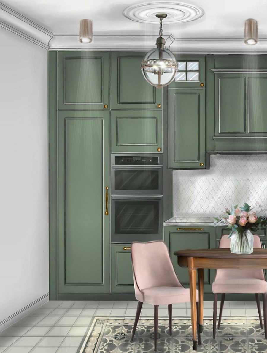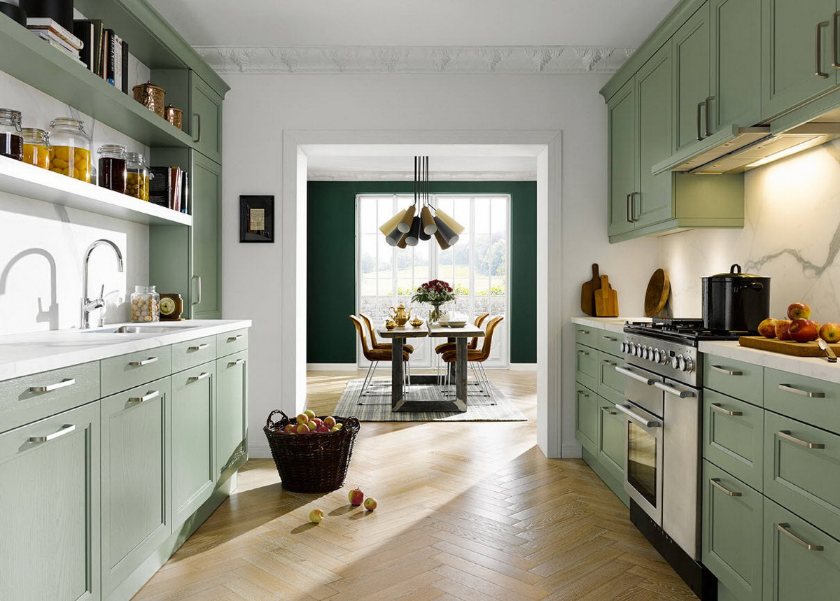Рассмотрим самые модные и популярные тона зеленого, используемые для кухонь сегодня.