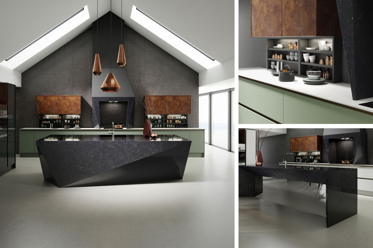 Дизайн, выполненный в черно-изумрудных тонах, отличается большой оригинальностью. Темные детали добавляют этому оттенку зеленого роскошный и аристократичный вид.