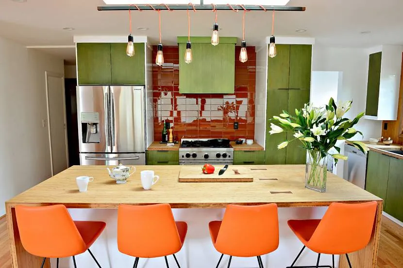 Оранжевый очень часто используется при отделке кухонь. Такой цвет лучше оставить для акцентов – аксессуаров и текстиля.