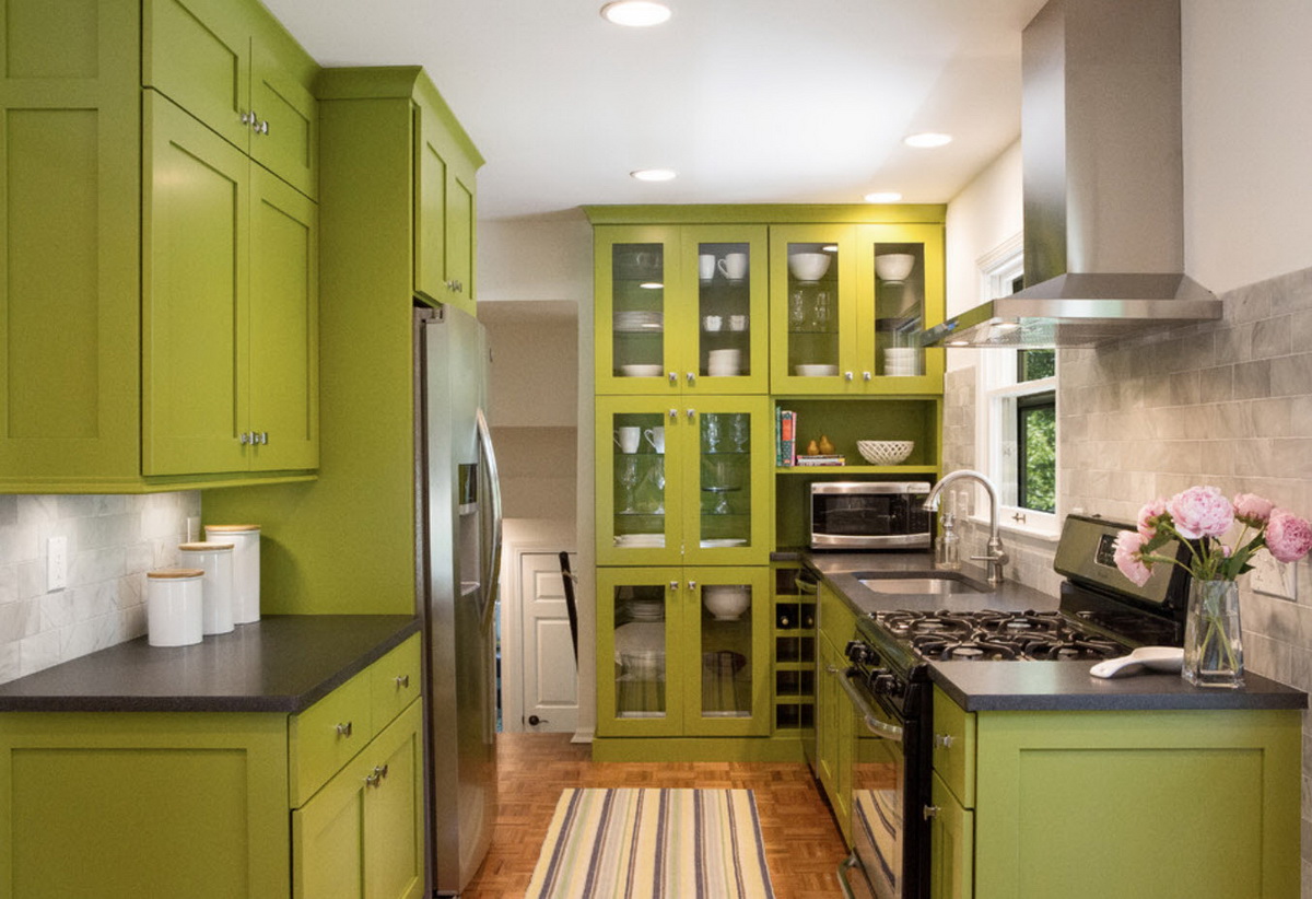 Сочный и яркий, насыщенный лаймовый ассоциируется с цитрусами и словно заряжает энергией. Этот цвет идеален для кухни в современном стиле.