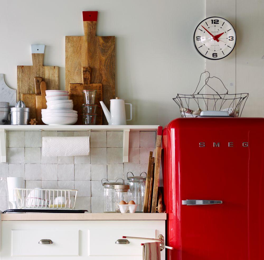 Еще одно решение — приобретение небольшого холодильника, который можно встроить в нишу под окном, спрятать за фасадом верхних или нижних шкафов гарнитура.