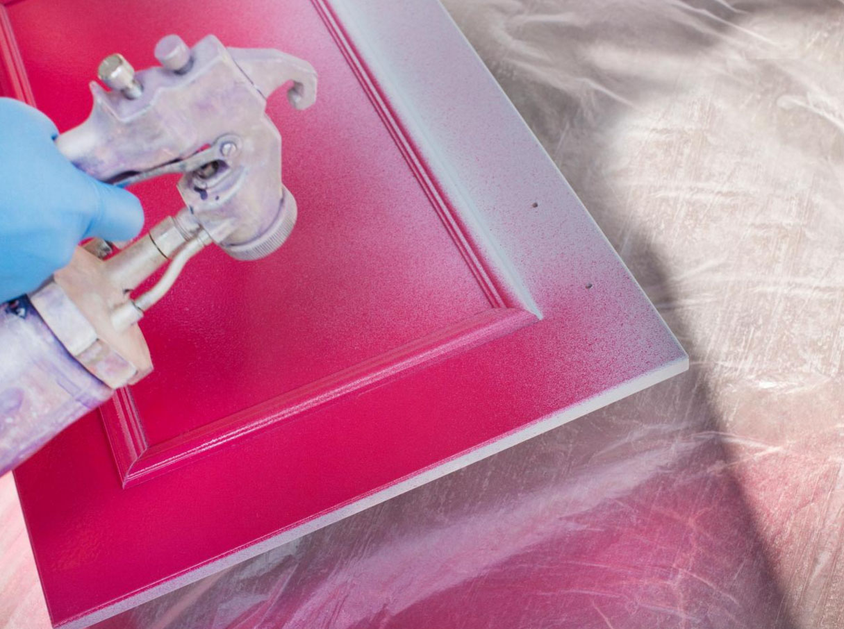 На последнем этапе окрашивания кухонных фасадов используется матовый или глянцевый аэрозольный акриловый лак. Его можно наносить при помощи кисти, или аэрозольным способом.