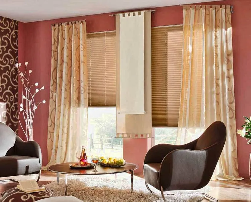 Для гостиной и спальни можно выбирать ткань плотнее. Портьера может быть достаточно тяжёлой и плотной, чтобы все домочадцы чувствовали себя комфортно, будучи защищёнными от проникновения солнечных лучей.