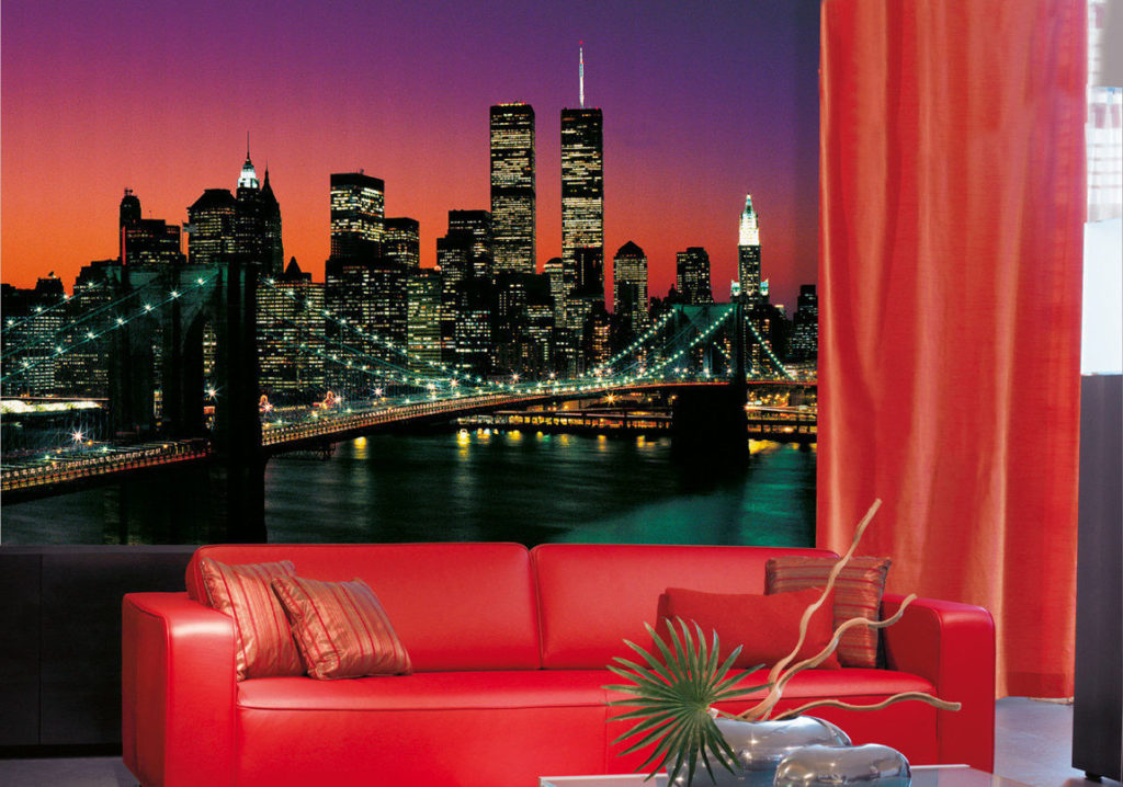 Изображение города эффектно смотрится в гостиной комнате или в подростковой комнате. В этом случае вопрос, какие модные фотообои с урботематикой выбрать, зависит исключительно от предпочтений хозяина.