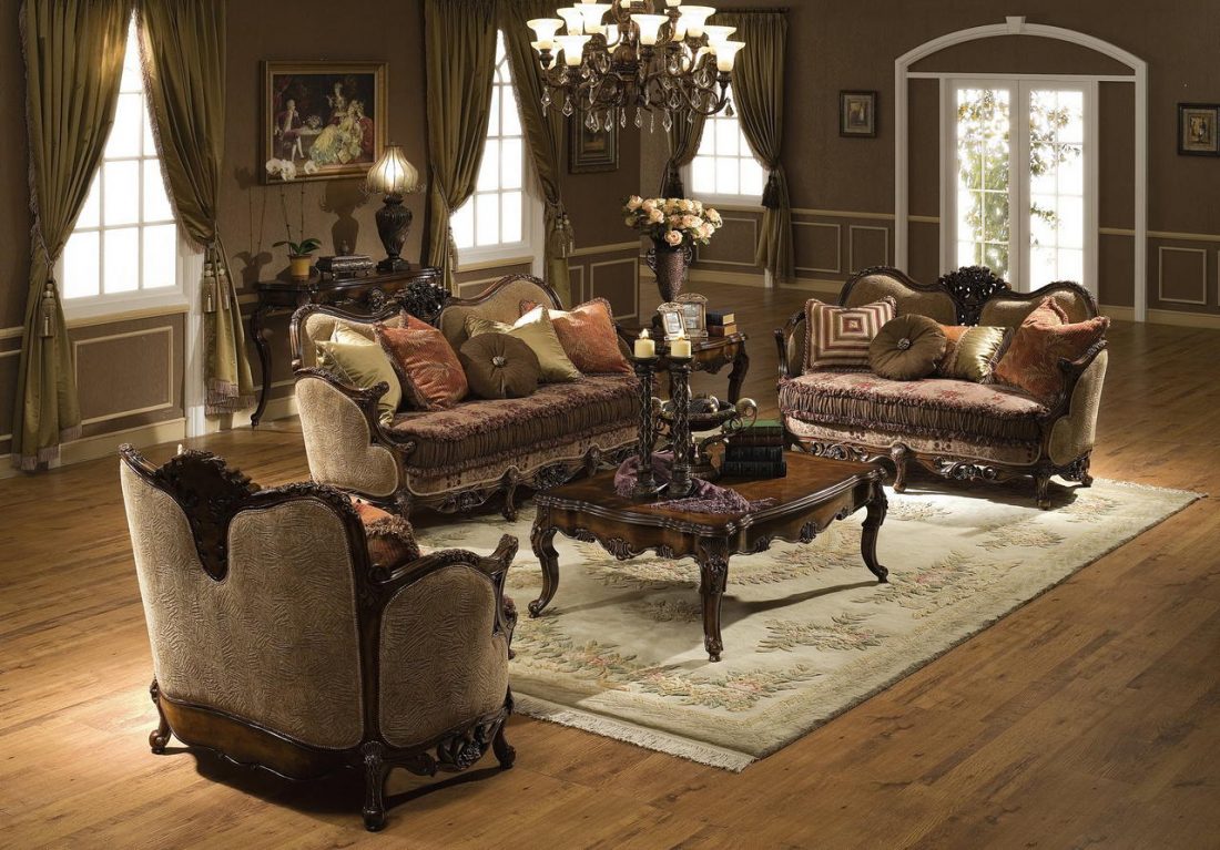 - Мебельные элементы обладают четкими формами, симметричными очертаниями и украшаются разными декоративными деталями в виде резьбы, ковки, колонн, лепнины и прочего.