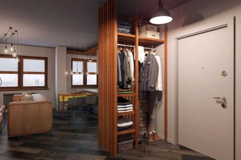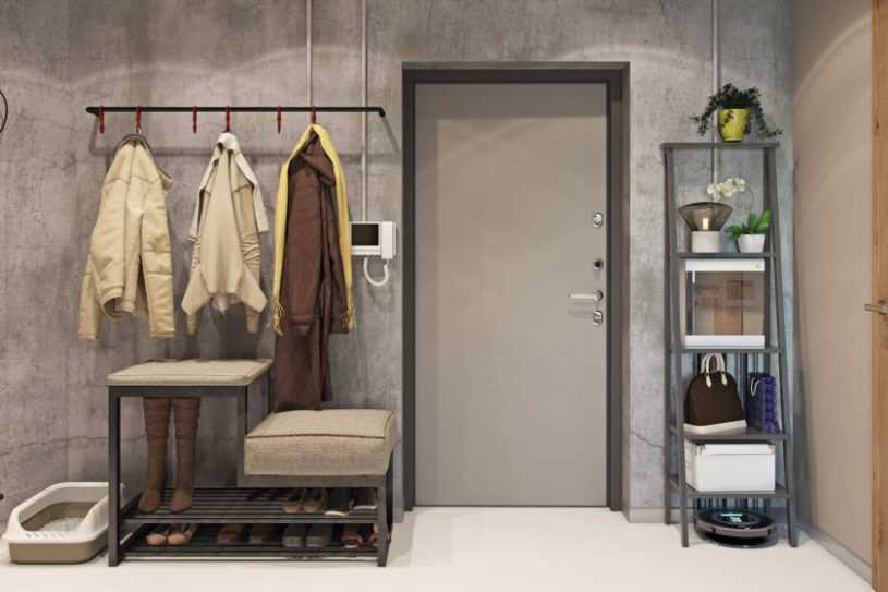 Есть только коридор. Вот его-то и используют как помещение, в котором раздеваются и одеваются. В такое пространство встанут только малогабаритная специально подобранная мебель.