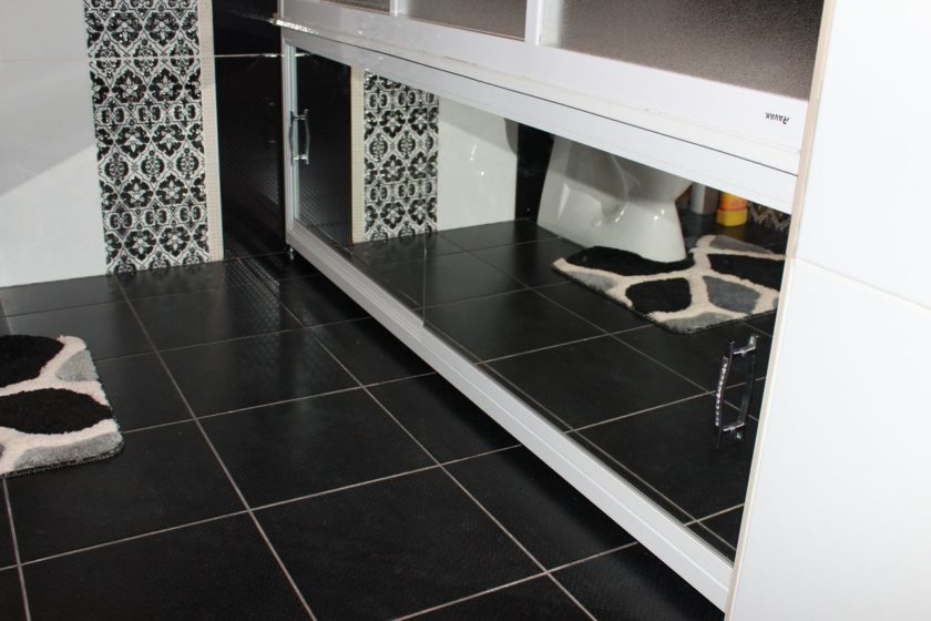 Крепкая, из материалов, устойчивых к химическим «казусам». Все, что нужно спрятать от посторонних глаз окажется за дверцами ванных шкафов, в том числе бытовая химия, порой весьма агрессивная и способная упасть и разлиться\рассыпаться. На хорошей мебели не должно оставаться «химических ожогов».