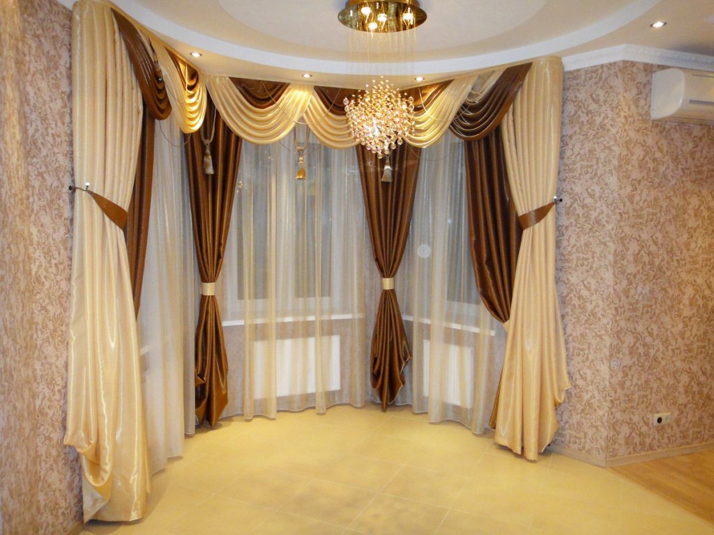 Трёх рядовые гардины — отличная модификация для штор с наличием багетных декорированных составляющих или ламбрекена. Однорядный выступающий элемент предназначен на одно полотнище.