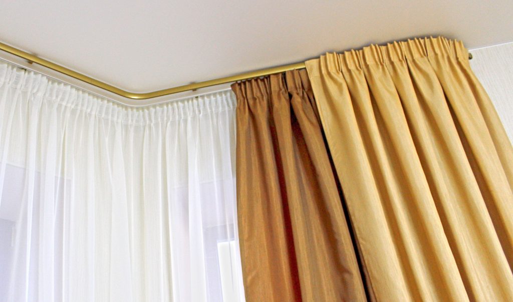 - На окнах нестандартной ширины (в домах новой планировки или загородных коттеджах) из-за массы гардин лучше использовать этот способ крепления, так как он не «просядет» и не будет изгибаться в нежелательных местах.