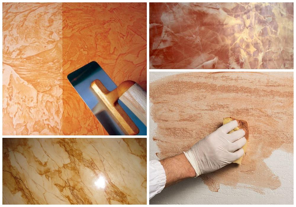 - Венецианская. Имитирует благородный натуральный камень разных пород.