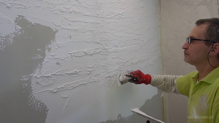 Работа над отделкой стен фактурной штукатуркой из шпаклевки проходит в несколько этапов: