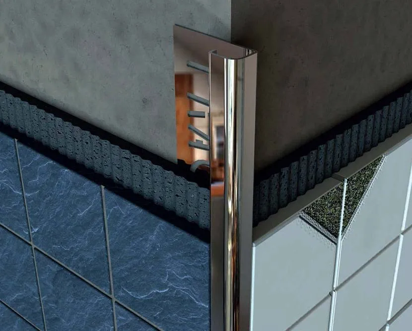 - Алюминиевые уголки универсальны, имеют нейтральный цвет и дают больше простора для творчества дизайнера. Отлично сочетаются с широкой цветовой палитрой кафеля и сантехнического оборудования. Могут сочетаться с различными напылениями. Достоинства материала в его легкости, повышенной прочности в сравнении с пластиком, а также стойкости в отношении коррозии.