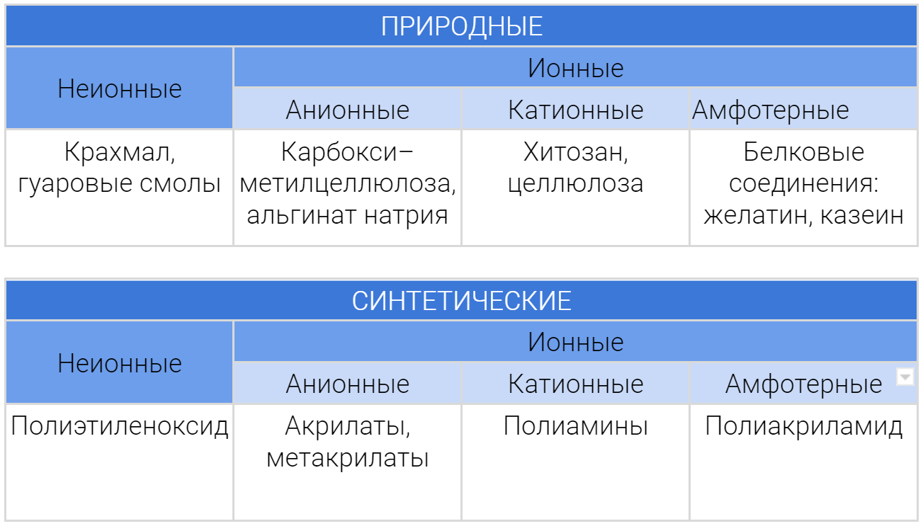Виды и классы флокулянтов