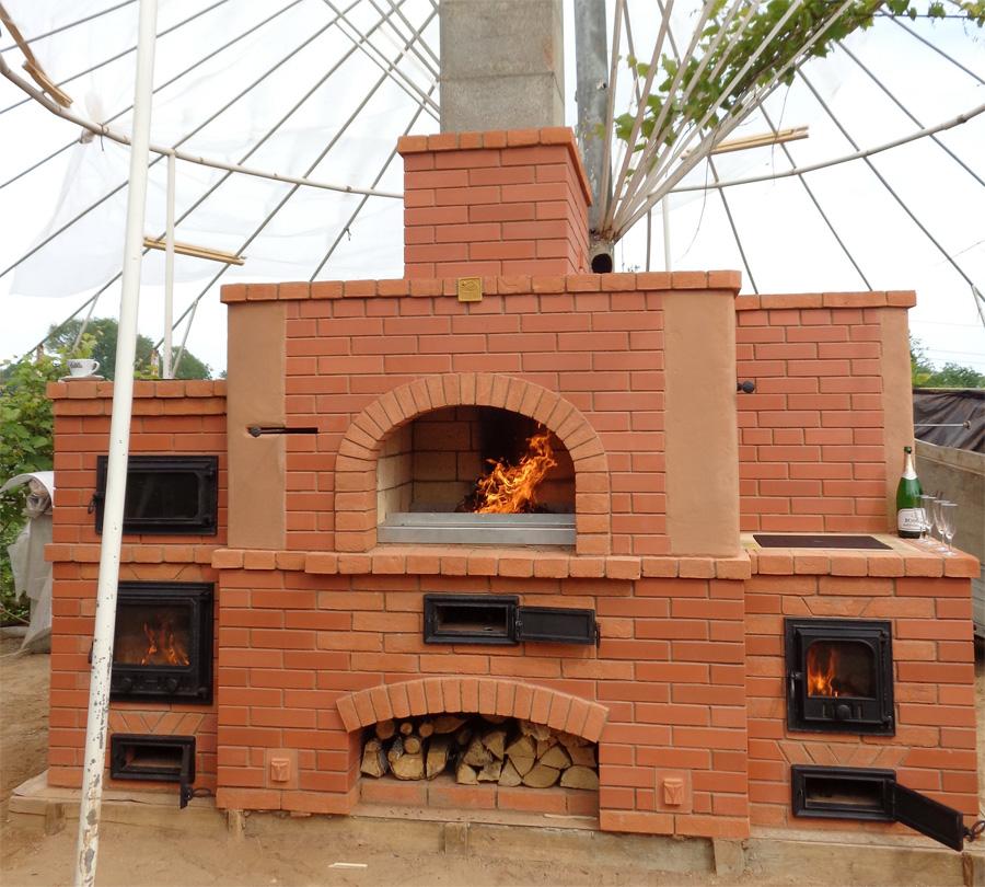 И составные части, и кладка напоминают русскую печь с камином и лежанкой. Отказ от последней выгоден сокращением габаритов и плитой, на которую поместится большой казан. Порядовка такая: