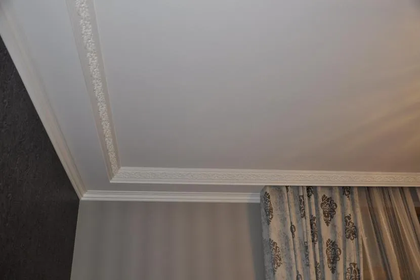 Чтобы произвести крепление карниза качественно, предварительно подготовьте поверхность потолка: устраните все щели и неровности. Это обеспечит плотное прилегание галтели при поклейке.