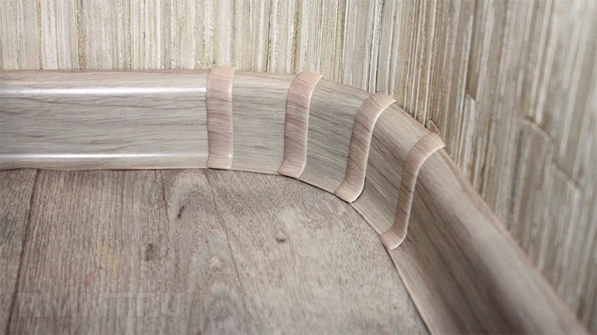 - Пластины плинтуса укладываются в стусло.
