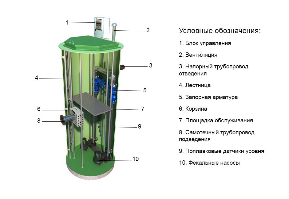 Оборудование, входящее в состав данного типа канализационной насосной станции: