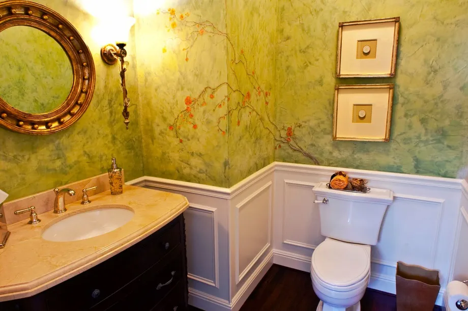 Относительно условий эксплуатации внутри помещений ограничения, конечно, имеются. Но благодаря разнообразию компонентов и готовых составов можно подобрать нужный вариант. Дышащее покрытие, стойкое к грибковым спорам, ржавчине (гипс – исключение), оно быстро высыхает и не впитывает запахи. При правильном подходе можно декорировать стены даже в ванной комнате.