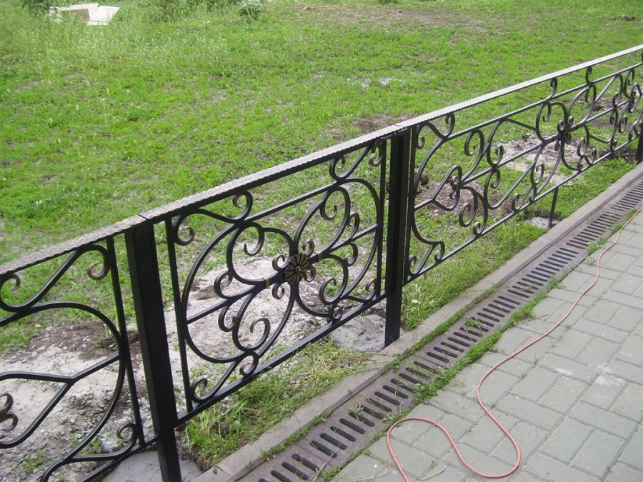 Декоративный забор часто собирают из металла. Для этого приобретают готовые блоки. Они могут быть выполнены из кованых элементов. Металл требует периодического подкрашивания. Это нужно иметь в виду. Для установки потребуются железные трубы. Это опоры.