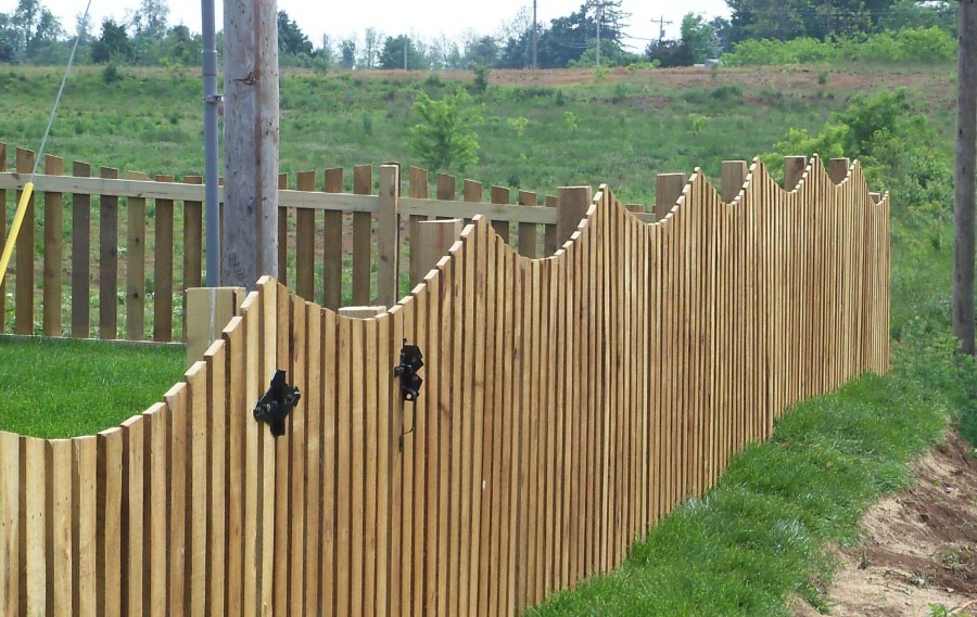 От ширины шага между облицовочными досками зависит «прозрачность» заграждения. Также можно фигурно вырезать узоры на верхней части облицовочных досок, это добавит оригинальности конструкции.
