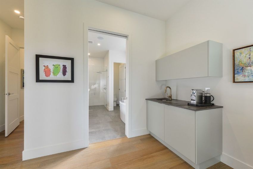 Плинтус в цвет дверей или пола будет смотреться выигрышным акцентом в том случае, если стены помещения будут контрастными. Особенно и оригинально в таком дизайне смотрятся светлые двери, плинтус и пол в сочетании со стенами темного оттенка. При этом подобное смелое решение актуально только для комнат с высокими потолками. Сочетание из светлого потолка, светлой двери, плинтуса и пола с темными стенами вытягивает пространство горизонтально, поэтому визуально оно будет выглядеть ниже. Еще у нас есть статья, где расписано по полочкам про цвет двери и плинтуса.