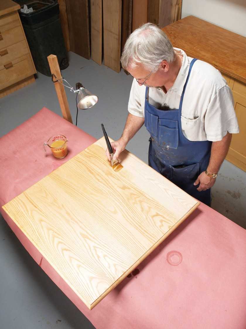 Совет! Чтобы рисунок древесных волокон был виден сквозь краску, наносят всего один ее слой.