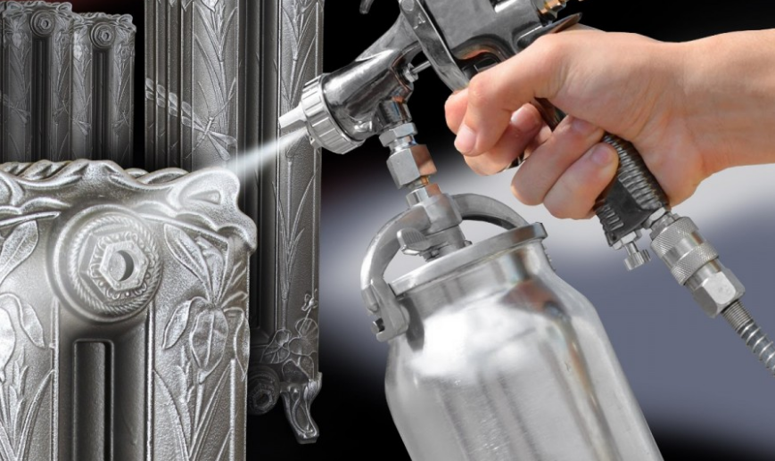Краскопульт. Это самый экономный процесс, который дает равномерный слой при распылении краски. Главное — не прерывать процесс, чтобы избежать неравномерности слоя. Все движения должны быть плавными и делаться в одном направлении.