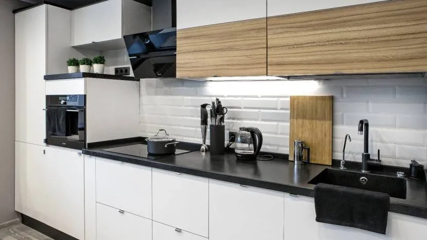 Для ее оформления вы можете выбрать классический вариант — керамическую плитку либо воспользоваться готовым рабочим фартуком. Если вы всё же выбрали первый способ, то вам придется выдержать ряд параметров: