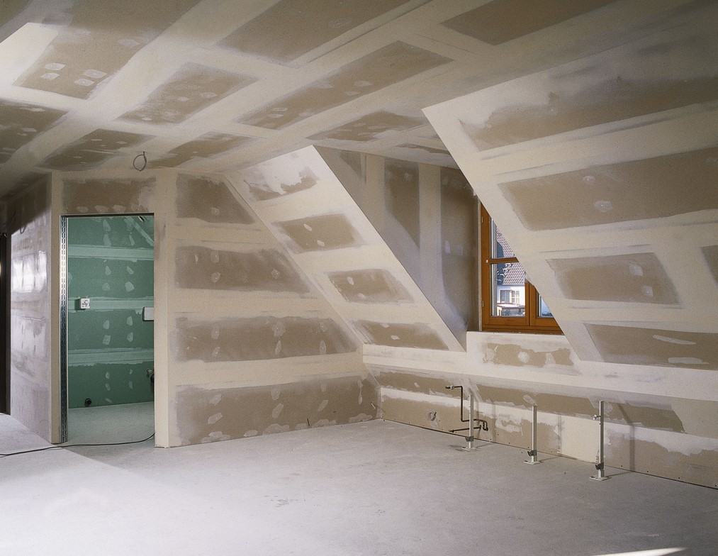 - После полной полимеризации пены и черновой подготовки внутренней поверхности стен фиксируем на них ГПЛ-С (удаляем защитную бумагу и клеим к откосам).