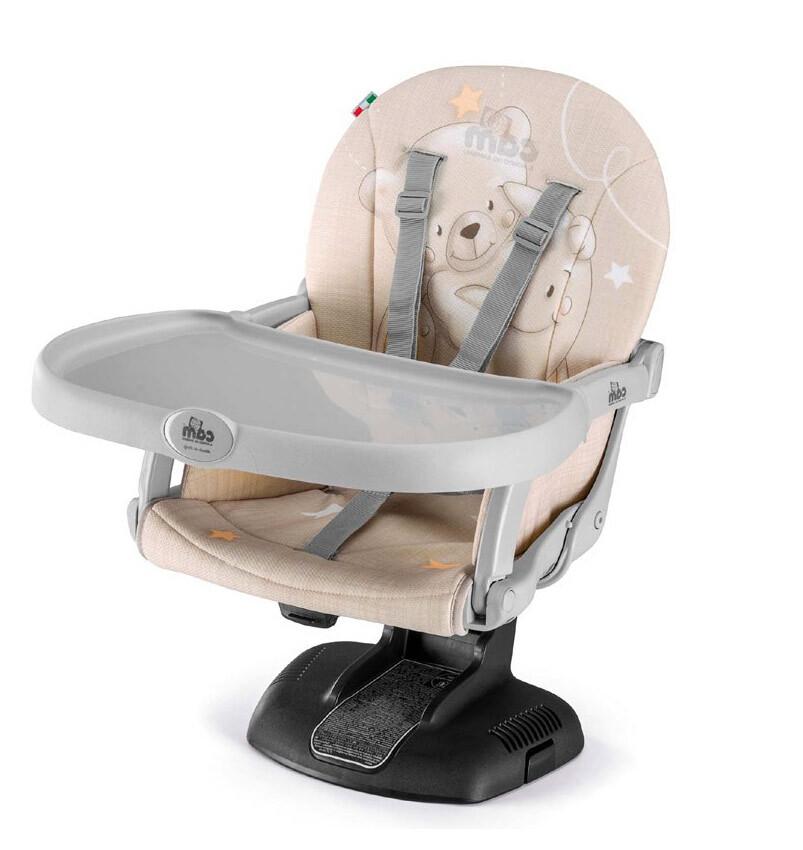 Модель практичная и компактная, пользоваться удобно. Можно брать в длительные поездки. Крепится бустер к любому стулу. Подлокотники мягкие, сиденье анатомическое. Съемный чехол из прочного материала, влагоотталкивающий. Загрязнения можно удалить влажной губкой. Производитель – Италия. Используется с 6 месяцев. Выдерживает до 15 кг. Высота регулируется (5–20 см, 7 позиций). Ремень пятиточечный, тело фиксирует надежно. Система крепления универсальная. На основании присутствуют прорезиненные, противоскользящие вставки.