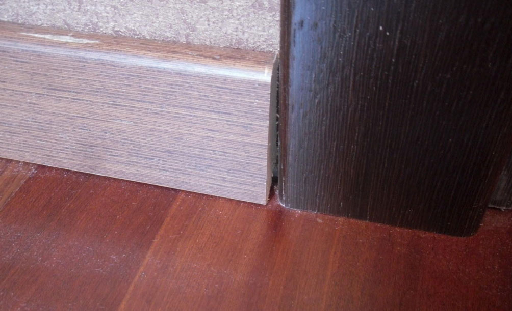 Шов между накладной планкой и напольным плинтусом должен быть аккуратным