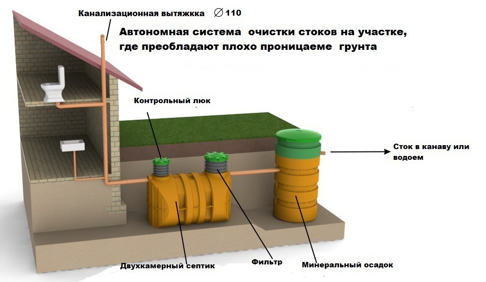Все работы по устройству системы слива при загородном доме могут быть выполнены следующим образом: