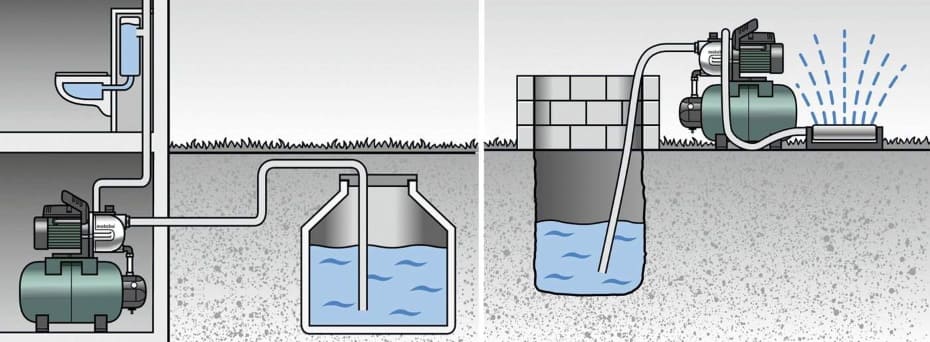 Насосная станция с выносным (слева) и внутренним (справа) эжектором. Оборудование с выносным эжектором может быть установлено на приличном расстоянии от колодца или скважины