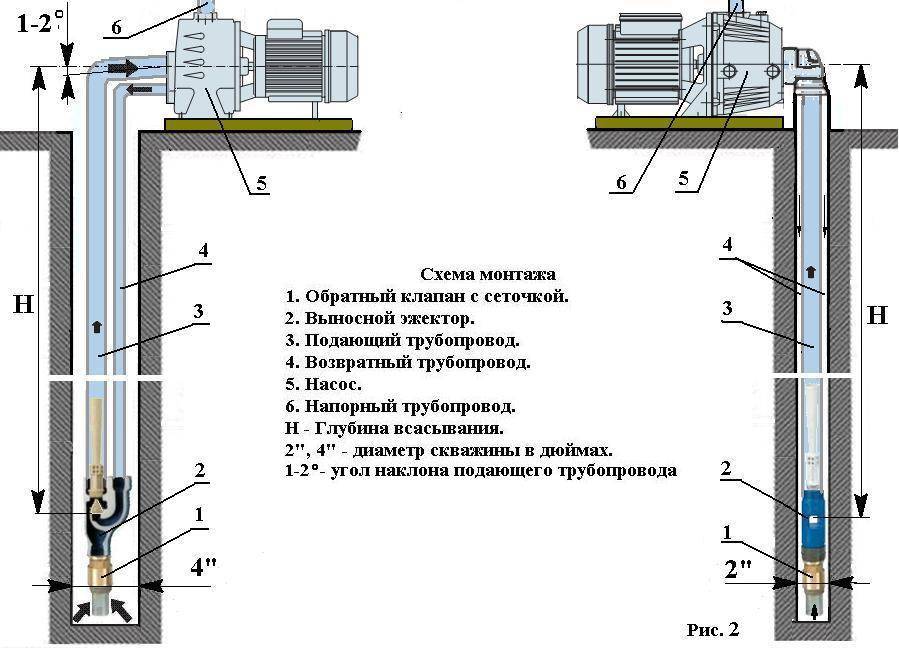 Схема монтажа двух типов эжекторных насосов