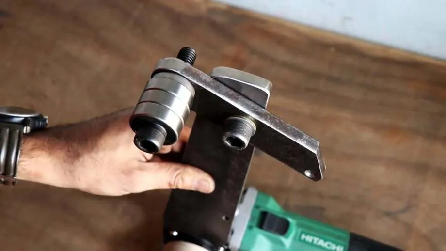 Сократить расходы, но и при этом ограничить возможности использования гриндера позволяет приставка, состоящая из штанги с двумя роликами. Устройство позволяет за считанные минуты сделать гриндер из болгарки. Приспособление имеет стандартное крепление, подходящее для монтажа на углошлифовальную машину.