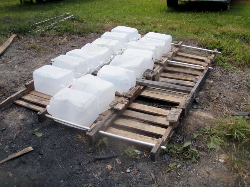 Еще один бюджетный вариант, главное чтобы канистры были целыми, а там, глядишь не утопнет.
