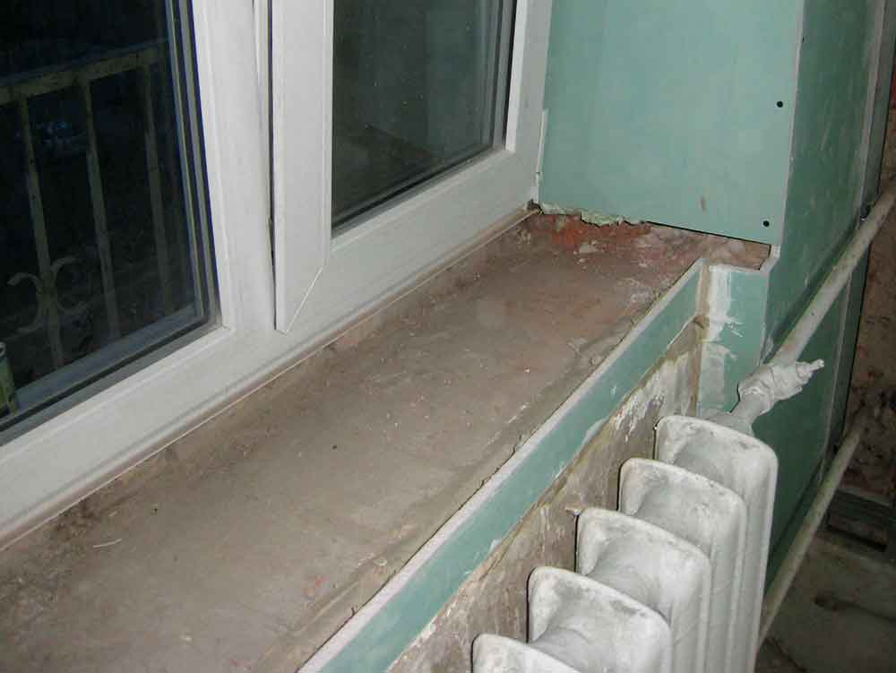 - Целесообразно проверить надежность кладки в кирпичных домах и целостность бетона перед заказом подоконника. Если есть повреждения, требуется тщательный профессиональный ремонт стены и оконного проема.