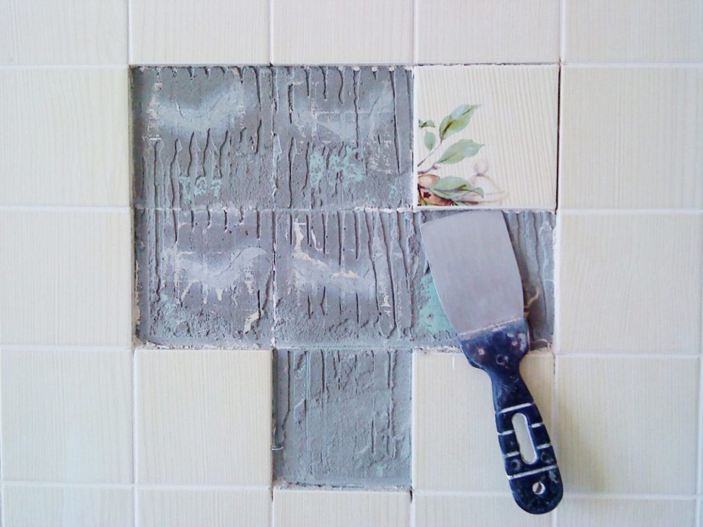 Снятие при помощи зубила и молотка. Если облицовочная поверхность была положена на клеевой раствор, то ее легко удалить с помощью зубила. Метод с применением зубила и молотка позволяет снять покрытие без дефектов. Чтобы удалить затирку из швов, ее обильно смачивают водой и вычищают с помощью скребка. Зубило вставляют между плиткой и стеной под углом 45° и делают несколько несильных ударов. После этого затирку снова смачивают и повторяют процедуру со следующими участками. Для удаления клеящих составов используют шпатель.