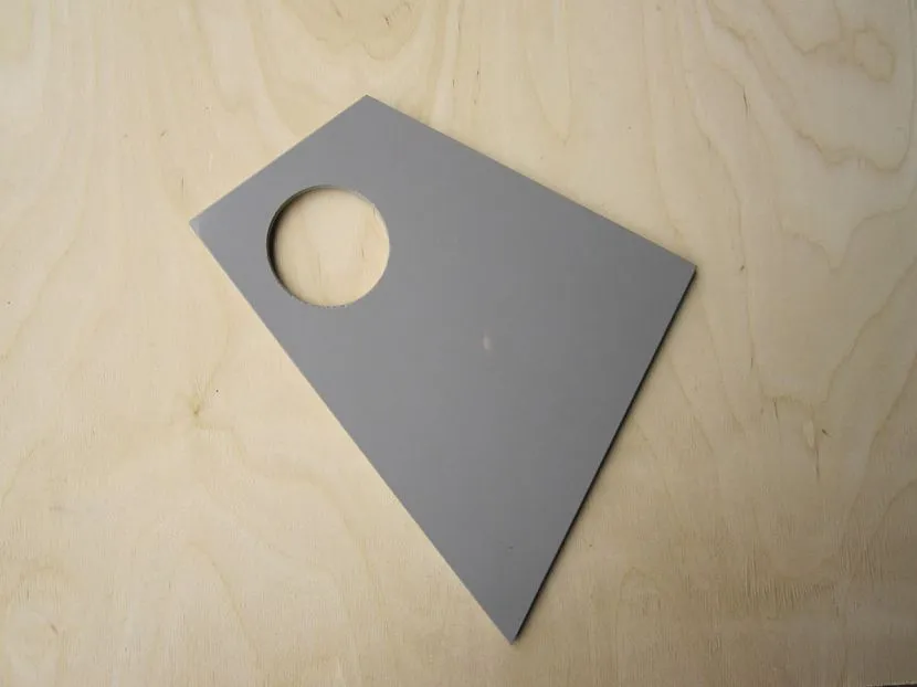 - Керамический модуль помещается между двумя фанерными деталями такой же формы и размера. Верхний элемент располагают на расстоянии 1-2 см от края мозаики.