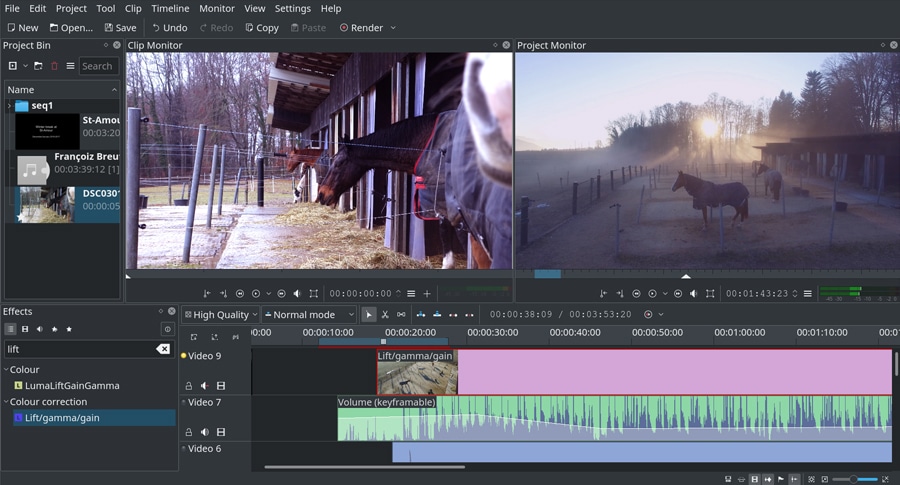 Kdenlive – это бесплатный видеоредактор с открытым исходным кодом. В сообществе Linux этот инструмент пользуется большой популярностью за счёт низких системных требований, стабильной работы даже на компьютерах с небольшим объёмом памяти и качественной обработки видео в 4K (конечно, при наличии достаточно мощного процессора).